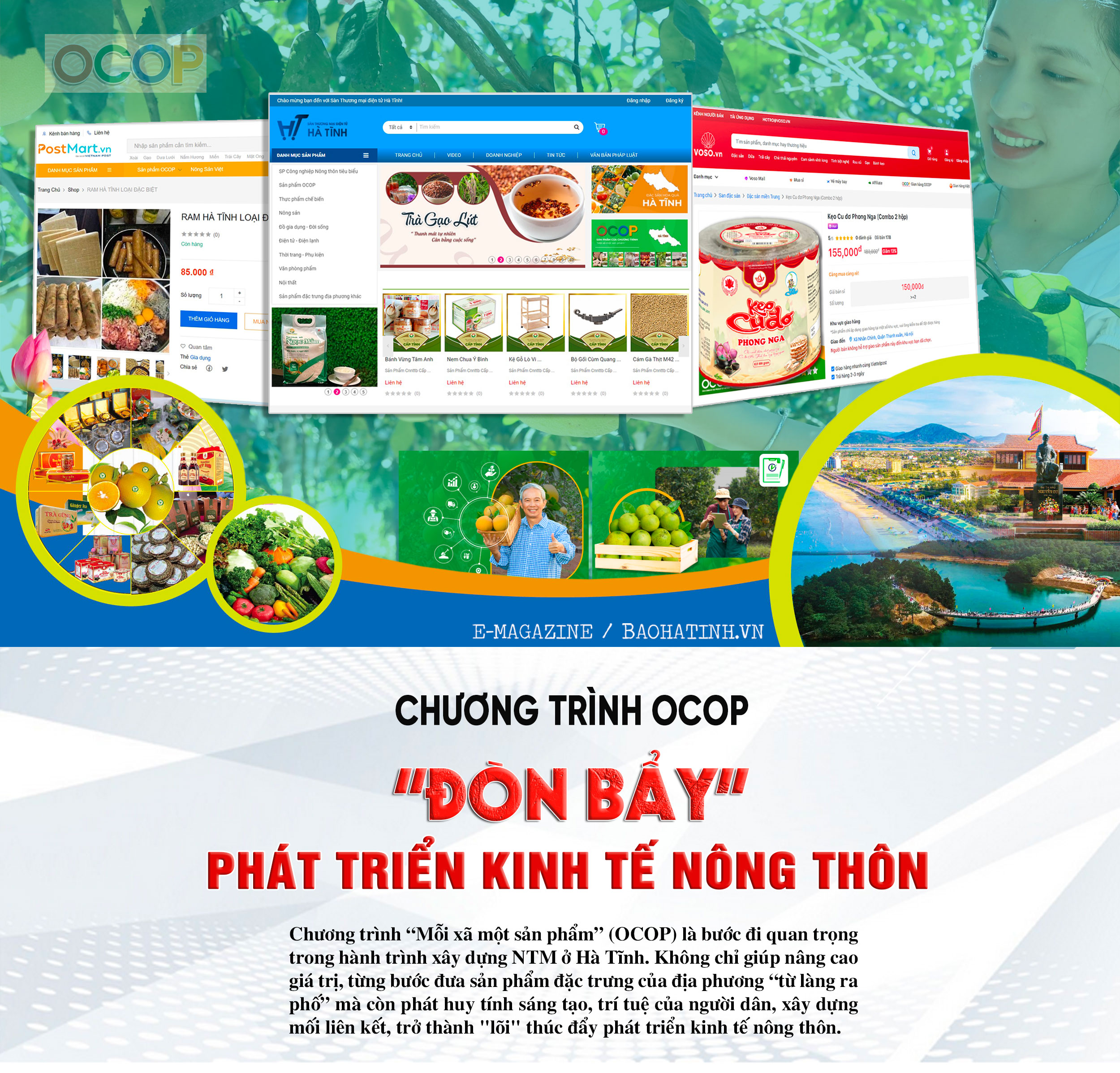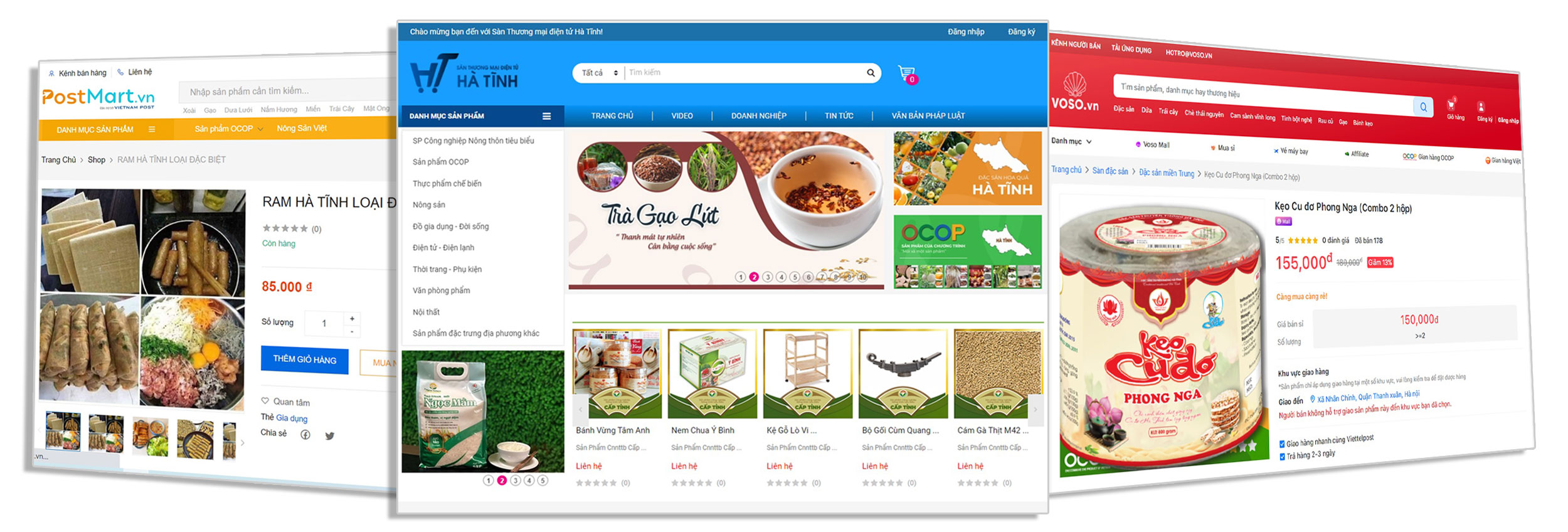 Nhiều sản phẩm OCOP Hà Tĩnh được rao bán trên sàn thương mại điện tử như: Hatiplaza.com, Postmart.vn, Voso.vn, Sendo.vn.