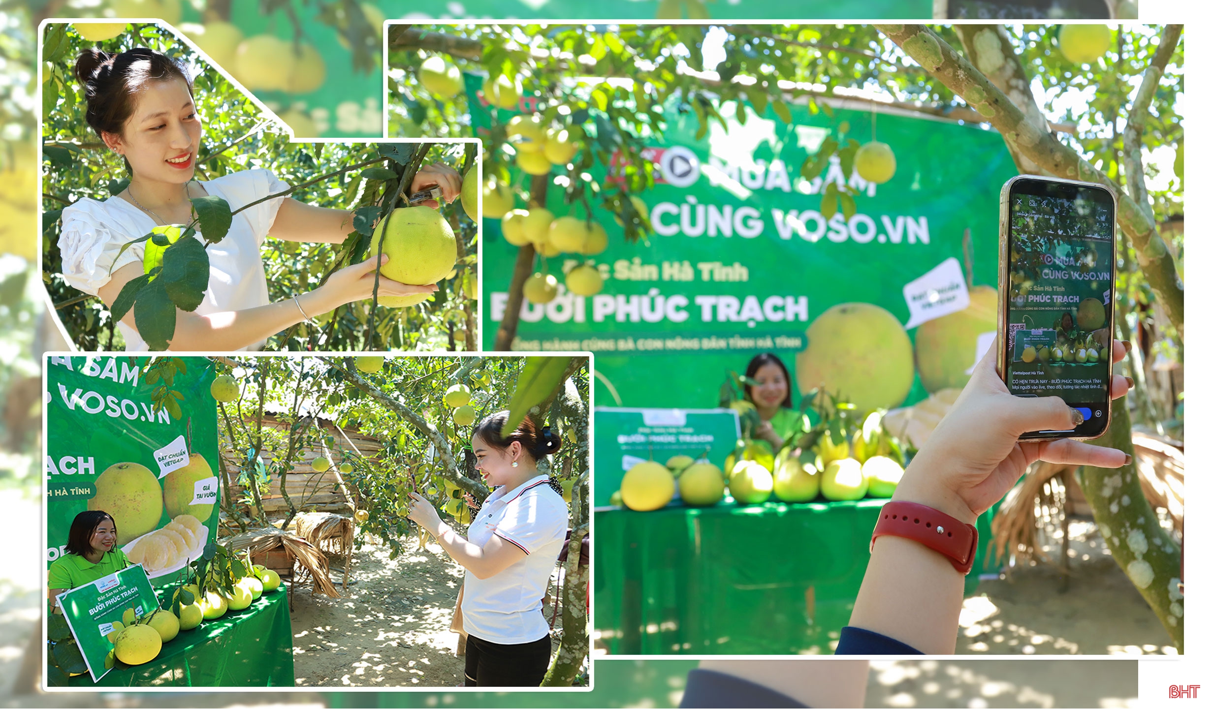 Sàn thương mại điện tử Voso.vn (thuộc Công ty CP Bưu chính Viettel) tại Hà Tĩnh tổ chức livestream tại vườn bưởi Phúc Trạch.